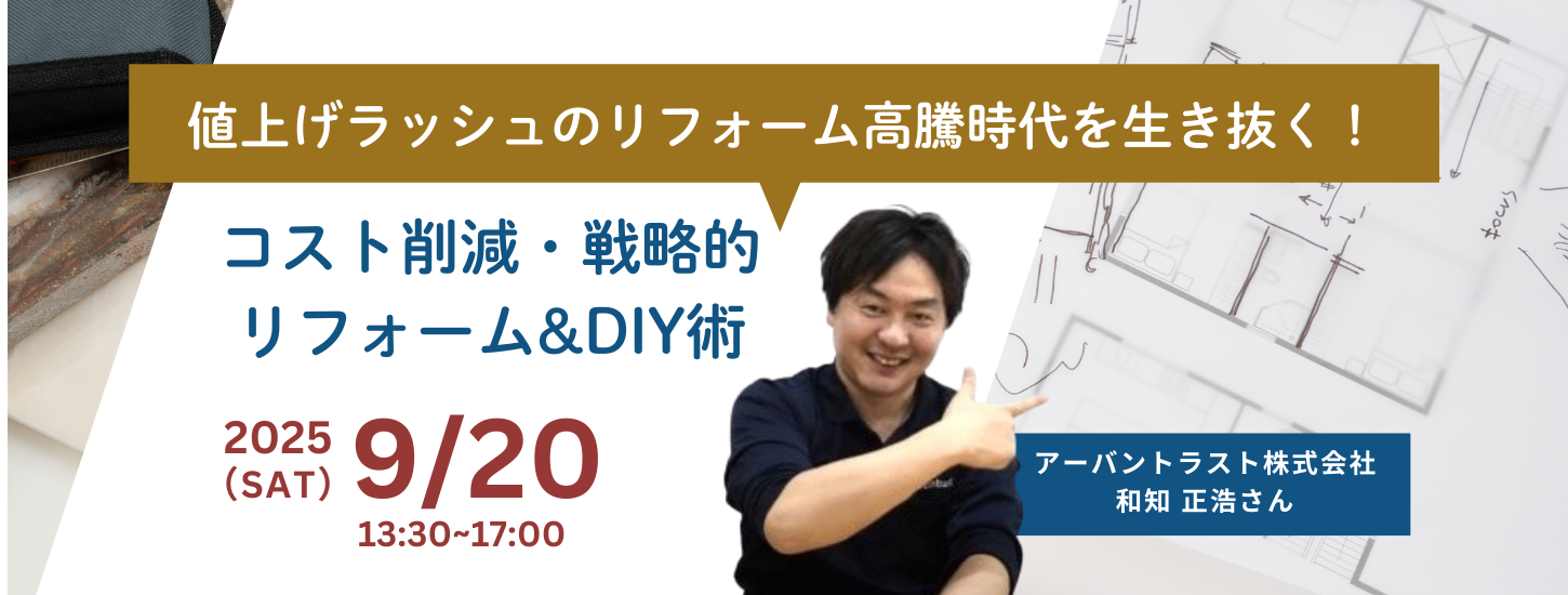このセミナーでは、「DIY未経験者」でも実践できる原状回復の工夫・工事コスト削減の考え方・職人との付き合い方などを、現場目線でわかりやすく解説します。
